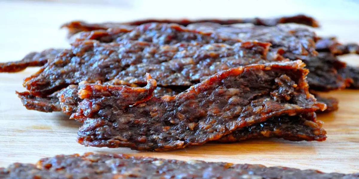- Viande de bœuf séchée (jerky) : 300–400 kcal pour 100 g