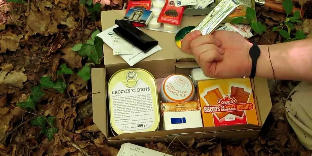 - 🇫🇷 Ration de Combat Individuelle Rechauffable (RCIR) : environ 1,8 kg pour 3 500 kcal, trois repas complets avec plats cuisinés (cassoulet, lentilles-saucisses, couscous, etc.), biscuits vitaminés, café, confiture, accessoires (pastilles purifiantes, allumettes, lingettes…).