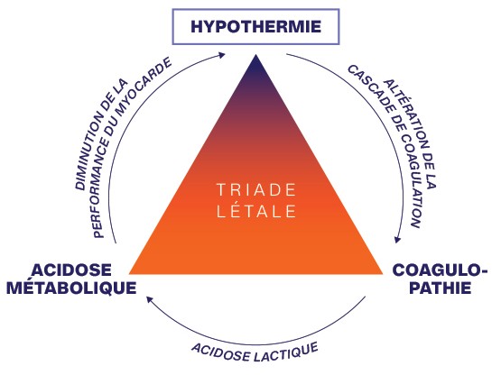 Le traumatisé grave ne meurt pas uniquement de ce qu’il a perdu, mais de ce qu’il n’arrive plus à compenser. Dès que la perfusion chute et que la température corporelle baisse, la situation bascule : coagulation inefficace, dégradation neurologique, perte de tonus vasculaire, spirale d’hypoxie.
