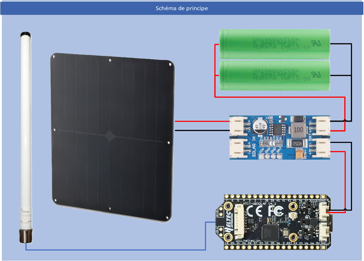 Dans ce cadre, le Heltec LoRa 32 V4 configuré en rôle ROUTER consomme environ 50 mA en fonctionnement permanent. Cette donnée a guidé le dimensionnement du système énergétique :